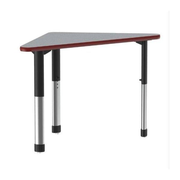 Correll Adjustable Height Collaborative Desk. Gray Granite 30" X 41" Wing Thermal Fused Laminate top resists scratches, dents, paint, markers, crayons, and food and juice stains. Thermal Fused Laminate (TFL) is a resin infused laminate not glued on like high pressure laminate, it is fused to the board using a heat treatment process. Black/Chrome adjustable height legs can be set from 25" to 35" in 1" increments and includes Hex Wrench for fast height adjustments. Red T-Mold edging to protect the table as well as your walls. Heavy Duty yet portable for easy storage. Ideal for demanding environments. YOU CAN COUNT ON CORRELL: Correll was established in 1969 and has been in business for over 50 years. With our out Standing Customer Service, innovative new product lines, and the largest selection of Folding Tables available from any manufacturer, now, more than ever, you can count on Correll.