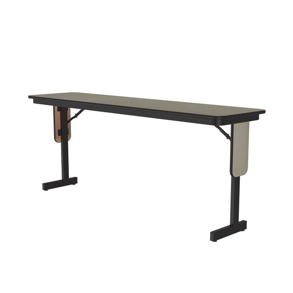 Correll Panel Leg Folding Classroom Training and Seminar Tables. 18"x60" Savannah Sand high pressure laminate surface, resists scratches and stains and has a hard, flat writing surface. Heavy Duty 3/4" thick high density particle board with backer sheet that helps prevent warping from moisture entering from the underside of the table. Steel offset legs. Unique Knife lock folding legs makes the underneath completely open for maximum leg room and comfort. Stays open securely with automatic lock open legs. Black T-Mold edging protects the table and your walls. Nylon guides on legs helps protect floors and carpets. Classy Panel Leg design. Heavy Duty construction Ideal in public and commercial spaces including schools and places of worship. YOU CAN COUNT ON CORRELL: Correll was established in 1969 and has been in business for over 50 years. With our outstanding Standing Customer Service, innovative new product lines, and the largest selection of Folding Tables available from any manufacturer, now, more than ever, you can count on Correll.