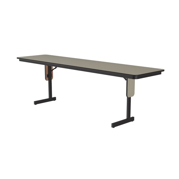 Correll Panel Leg Folding Classroom Training and Seminar Tables. 24"x96" Savannah Sand high pressure laminate surface, resists scratches and stains and has a hard, flat writing surface. Heavy Duty 3/4" thick high density particle board with backer sheet that helps prevent warping from moisture entering from the underside of the table. Steel offset legs. Unique Knife lock folding legs makes the underneath completely open for maximum leg room and comfort. Stays open securely with automatic lock open legs. Black T-Mold edging protects the table and your walls. Nylon guides on legs helps protect floors and carpets. Classy Panel Leg design. Heavy Duty construction Ideal in public and commercial spaces including schools and places of worship. YOU CAN COUNT ON CORRELL: Correll was established in 1969 and has been in business for over 50 years. With our outstanding Standing Customer Service, innovative new product lines, and the largest selection of Folding Tables available from any manufacturer, now, more than ever, you can count on Correll.