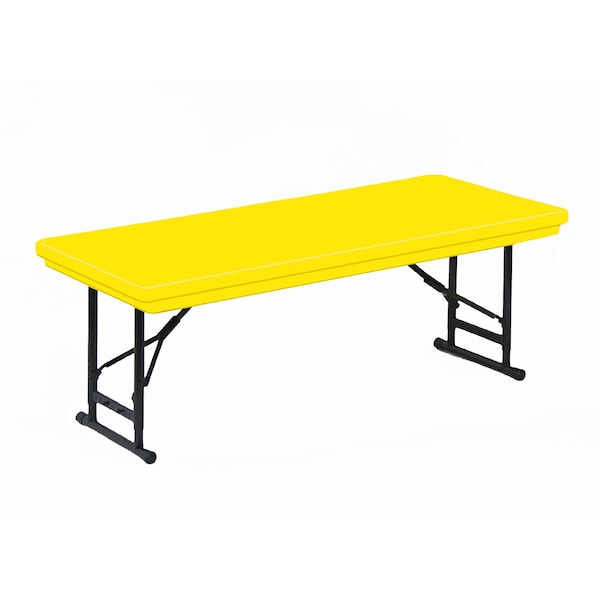 Correll Heavy Duty Blow Molded Short Folding Tables. Short version easily adjusts in height from 17" to 27" high in 1" increments. 24"x48" Yellow Blow-Molded one piece top. Light weight water-proof blow molded plastic designed to virtually eliminate top deflection. Color goes all the through, wont scratch or wear off and resists stains and damage and is virtually indestructible. Steel pedestal legs and strong integrated welded steel frame provides the maximum in strength and durability. Stays open securely with automatic lock open legs. Mar-Proof Plastic foot caps protect carpets and floors. Heavy Duty construction Ideal in public and commercial spaces including schools and places of worship where top will be exposed to foods, crayons, markers, paint, chemicals and other stains. Ideal for use with our T3072 Flat Stack or T282 Edge Stack Table Trucks. Accepts 1-1/4" skirt clips. YOU CAN COUNT ON CORRELL: Correll was established in 1969 and has been in business for over 50 years. With our out Standing Customer Service, innovative new product lines, and the largest selection of Folding Tables available from any manufacturer, now, more than ever, you can count on Correll.