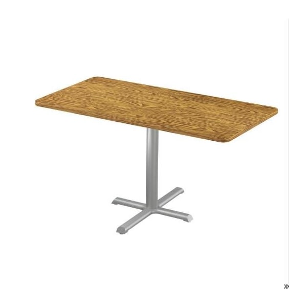 Rectangle Cafe Table W/ Cross Base, 48 in W, 30 in L, 29 in H, Particleboard Top, Medium Oak