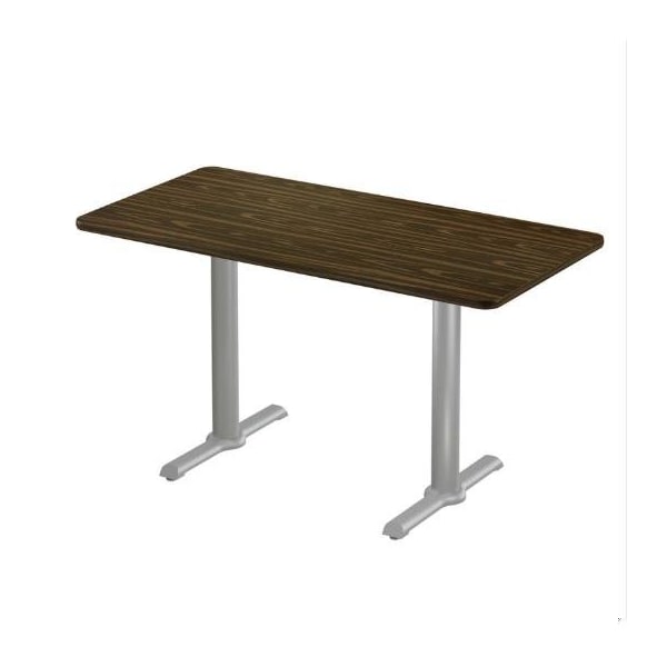 Rectangle Cafe Table W/ T-Base, 48 in W, 30 in L, 29 in H, Particleboard Top, Walnut