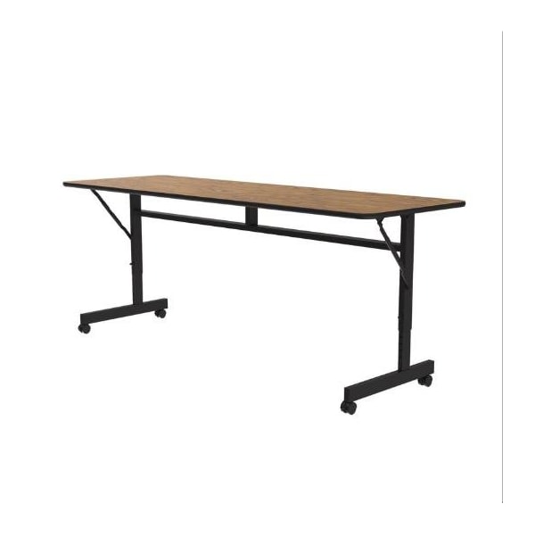 Rectangle Econoline TFL Flip Top Table, 60 in W, 23 in to 31 in H, Particleboard Top, Medium Oak