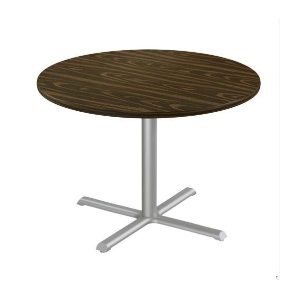 Round Cafe Table, 42 in W, 42 in L, 29 in H, Particleboard Top, Walnut