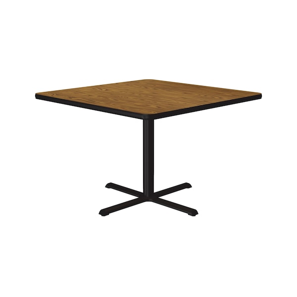 Square Cafe Bistro and Breakroom Pedestal Table, High Pressure Laminate Top, Medium Oak
