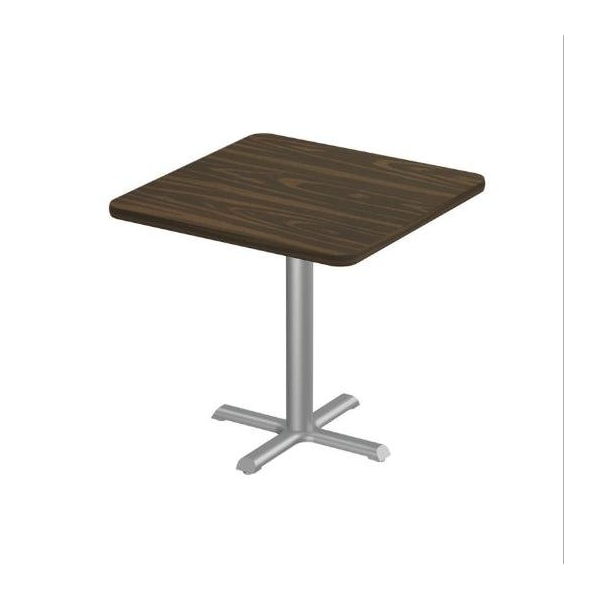 Square Cafe Table, 30 in W, 30 in L, 29 in H, Particleboard Top, Walnut