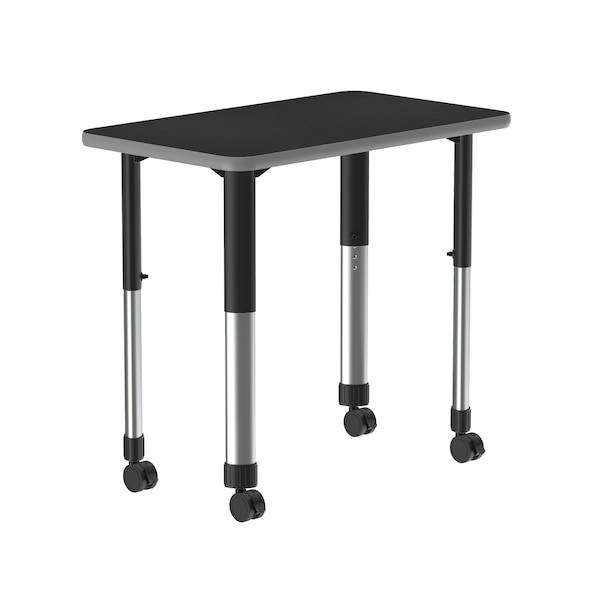 Correll Adjustable Height Collaborative Desk. Black Granite 34" X 20" Rectangular Thermal Fused Laminate top resists scratches, dents, paint, markers, crayons, and food and juice stains. Thermal Fused Laminate (TFL) is a resin infused laminate not glued on like high pressure laminate, it is fused to the board using a heat treatment process. Black/Chrome adjustable height legs can be set from 25” to 35” in 1” increments and includes Hex Wrench for fast height adjustments. Mobile with 4 locking castors for easy mobility. Gray T-Mold edging to protect the table as well as your walls. Heavy Duty yet portable for easy storage. Ideal for demanding environments. YOU CAN COUNT ON CORRELL: Correll was established in 1969 and has been in business for over 50 years. With our out Standing Customer Service, innovative new product lines, and the largest selection of Folding Tables available from any manufacturer, now, more than ever, you can count on Correll.