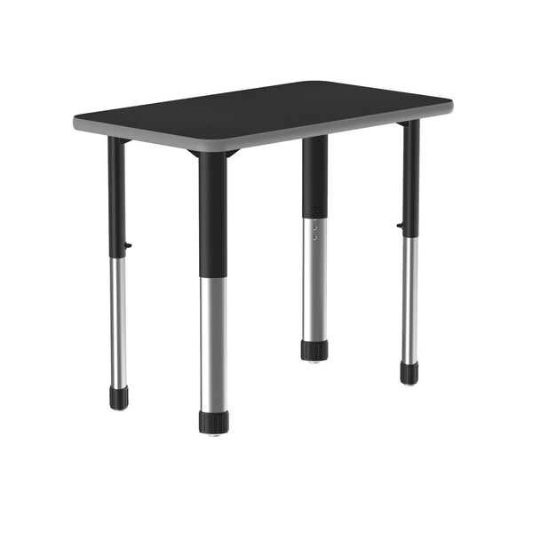 Correll Adjustable Height Collaborative Desk. Black Granite 34" X 20" Rectangular Thermal Fused Laminate top resists scratches, dents, paint, markers, crayons, and food and juice stains. Thermal Fused Laminate (TFL) is a resin infused laminate not glued on like high pressure laminate, it is fused to the board using a heat treatment process. Black/Chrome adjustable height legs can be set from 25” to 35” in 1” increments and includes Hex Wrench for fast height adjustments. Gray T-Mold edging to protect the table as well as your walls. Heavy Duty yet portable for easy storage. Ideal for demanding environments. YOU CAN COUNT ON CORRELL: Correll was established in 1969 and has been in business for over 50 years. With our out Standing Customer Service, innovative new product lines, and the largest selection of Folding Tables available from any manufacturer, now, more than ever, you can count on Correll.