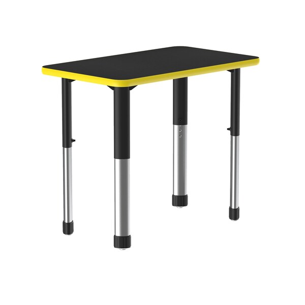Correll Adjustable Height Collaborative Desk. Black Granite 34" X 20" Rectangular Thermal Fused Laminate top resists scratches, dents, paint, markers, crayons, and food and juice stains. Thermal Fused Laminate (TFL) is a resin infused laminate not glued on like high pressure laminate, it is fused to the board using a heat treatment process. Black/Chrome adjustable height legs can be set from 25” to 35” in 1” increments and includes Hex Wrench for fast height adjustments. Yellow T-Mold edging to protect the table as well as your walls. Heavy Duty yet portable for easy storage. Ideal for demanding environments. YOU CAN COUNT ON CORRELL: Correll was established in 1969 and has been in business for over 50 years. With our out Standing Customer Service, innovative new product lines, and the largest selection of Folding Tables available from any manufacturer, now, more than ever, you can count on Correll.