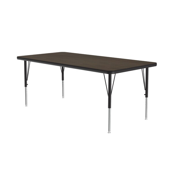 Correll Height Adjustable Activity Table. Thermal Fused Laminate (TFL) is a resin infused laminate not glued on like high pressure laminate, it is fused to the board using a heat treatment process. Table Size is 30"x60" Rectangle. Height adjustable from 19" to 29" in 1" increments (perfect for kindergarten to adult) Speedwrench included for fast and secure height adjustments. Walnut top resists scratches, dents, paint, markers, crayons, and food and juice stains far better than melamine. 1 1/4" thick high density top is sealed on both sides preventing moisture from entering the table and causing warping. Heavy Duty legs include oversize hairpin brace and shouldered set screws for maximum safety. Shoulder on leg set screw provides an extra measure of security even if the legs are not properly tightened. Leg mounting brackets are pre attached with 7 screws plus 3 additional screws in the leg plate. Black T-Mold edging and black and chrome legs. Tables are custom built to order. YOU CAN COUNT ON CORRELL: Correll was established in 1969 and has been in business for over 50 years. With our outstanding Standing Customer Service, innovative new product lines, and the largest selection of Folding Tables available from any manufacturer, now, more than ever, you can count on Correll.