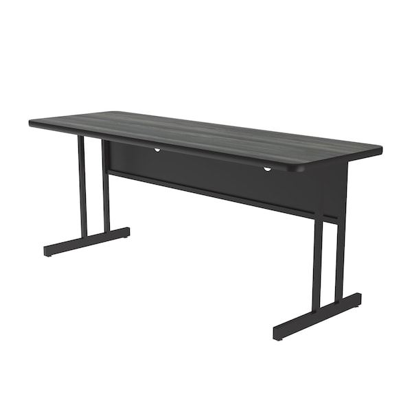 Correll Desk Height workstation. 24"x72" New England Driftwood high pressure laminate top. 1-1/4" thick High pressure laminate surface, resists scratches and stains and offers a hard, flat writing surface, and is the same material used in kitchen countertops. Top also features a backer sheet on underside of table that helps protect against moisture entering the underside of the table causing warping. Steel modesty panel with wire management. Black T-Mold edging to protect walls and table. Sturdy all steel frame with adjustable nylon leveling guides. YOU CAN COUNT ON CORRELL: Correll was established in 1969 and has been in business for over 50 years. With our outstanding Standing Customer Service, innovative new product lines, and the largest selection of Folding Tables available from any manufacturer, now, more than ever, you can count on Correll.