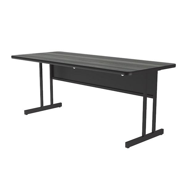 Correll Desk Height workstation. 30"x60" New England Driftwood high pressure laminate top. 1-1/4" thick High pressure laminate surface, resists scratches and stains and offers a hard, flat writing surface, and is the same material used in kitchen countertops. Top also features a backer sheet on underside of table that helps protect against moisture entering the underside of the table causing warping. Steel modesty panel with wire management. Black T-Mold edging to protect walls and table. Sturdy all steel frame with adjustable nylon leveling guides. YOU CAN COUNT ON CORRELL: Correll was established in 1969 and has been in business for over 50 years. With our outstanding Standing Customer Service, innovative new product lines, and the largest selection of Folding Tables available from any manufacturer, now, more than ever, you can count on Correll.