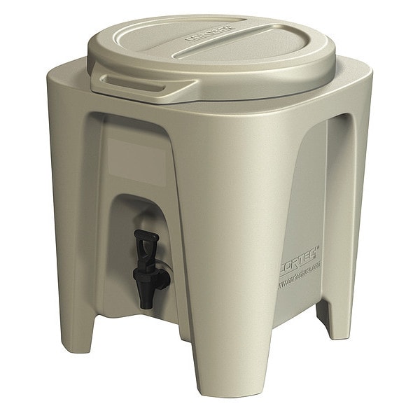 Beverage Dispenser, Capacity 5 gal, Shape Rectangle, Color Granite, Overall Height 19 1/4 in, Overall Width 17 1/2 in, Overall Depth 17 1/2 in, Number of Dispensers 1, Material Polyethylene, Dispenser Actuation Press Lever, Includes 2-Way Spigot, Handle, Lid, Maximum Cup Height 4 1/4 in, Standards FDA, Temperature Cold, Hot, Weight 18 lb