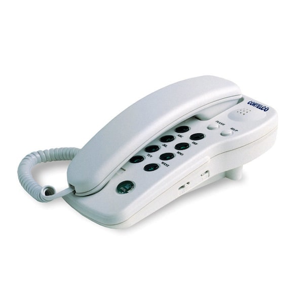 Cortelco Patriot II hospitality basic corded telephone w/memory buttons- 90V Message waiting lamp- Large matte area for customization bottom right-hand corner- Tone/pulse- Programmable pause- Wall mountable- Flash/redial- Hold with LED- Data port- Receiver volume control- Electronic ringer hi/low/off- A-Lead control- Hearing aid compatible- 10# One-touch memory includes labels- Positive line disconnect- Visual ring indicator- Keypad located under the handset when in cradle- BlackITT2194BK