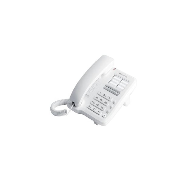 Cortelco trendline corded telephone- 3 One-touch speed dials- 10 Two-touch speed dials- Tone/pulse switchable- Lighted keypad in handset- Receiver volume control hi/med/low- Last number redial- Mute- Flash- FCC and ETL approved- Hearing aid compatible- Wall mountable- Frost white