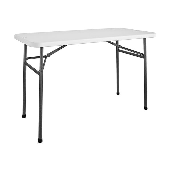 The Straight Folding Utility Table offers a versatile solution for everyday needs such as working from home, hosting parties or events, camping, tailgating or crafting. This durable, blow-molded table is portable and user friendly. Its long size is designed for maximum compatibility and comfortably sits four people. Nonmarring foot caps protect any floor surface from scratches or damage. Weather-resistant, shatter-resistant tabletop is great for both indoor and outdoor use. Foldable design folds flat to easily store it in the closet or garage when it's not in use. Easy-to-clean resin is paired with a durable steel frame for long-lasting use. Utility table supports up to 200 lb.