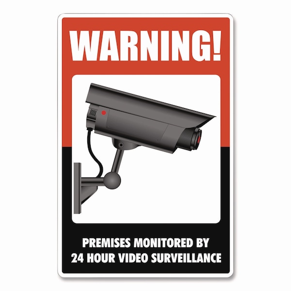 UV-Coated Preprinted Molded-Plastic Sign, 24-Hour Video Surveillance, 8 x 12, Black/Red/White