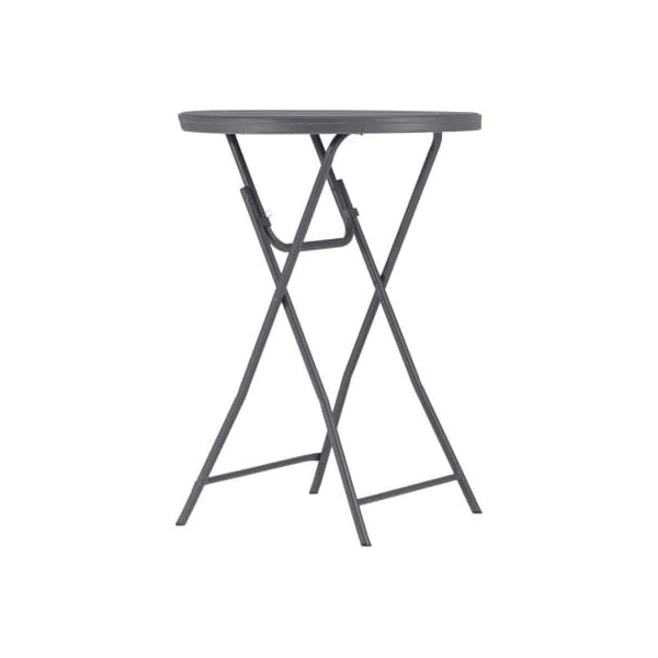 Zown commercial resin round cocktail style folding table, 32in, soley distributed by cosco, is made from high density resin and can be used indoors or outdoors. Steel frame for durability. Easy to set up, taken down and transport. Non marring foot caps. 350 lbs. Capacity. 10 year limited warranty. All shark grey color. Open dimensions 32in x 43in. Table is light weight at 18 lbs.