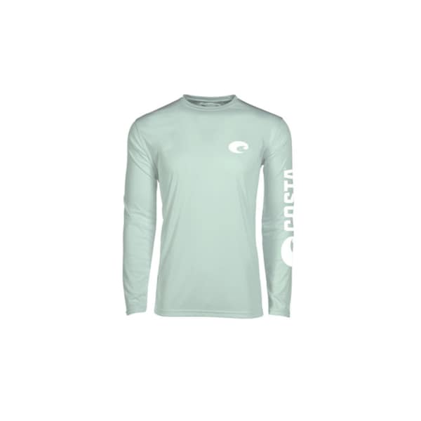 The Costa Del Mar Technical Performance Long-Sleeve Shirt for Men delivers the sun-fighting moisture-wicking performance you need on the water. UPF 50+ sun protection keeps your skin safe from harmful rays and the moisture-wicking design transports sweat away from your skin to promote cooling evaporation. This lightweight breathable men's fishing shirt has a ribbed crew neck that holds its shape and a built-in odor-fighting treatment keeps you fresh. This Costa Del Mar shirt is made from 100 percent polyester and is finished with a screen-printed logo on the left chest and a wordmark down the sleeve. Machine wash.