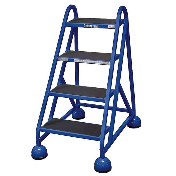 Rolling Ladder, Material Steel, Platform Height 3 ft, Handrails Included No, Handrail Height 30 in, Overall Height 3.3 ft, Number of Steps 4, Assembled, Load Capacity 450 lb, Step Tread Antislip Vinyl, Platform Depth 14 in, Platform Width 16 in, Bottom Width 25 in, Base Depth 39 in, Overall Width 25 in, Climbing Angle 56 Degrees , Step Depth 8 in, Step Width 16 in, Ladder Actuation Weight Activated Step Lock, Finish Powder Coated, Color Blue, Standards ANSI, CAl/OSHA Compliant, OSHA Compliant