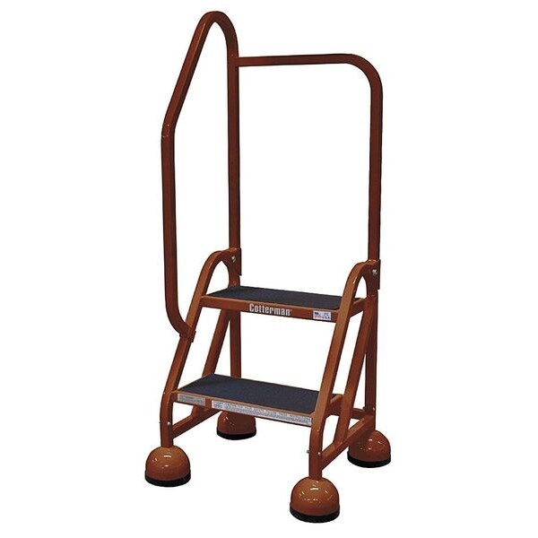 Rolling Ladder, Material Steel, Platform Height 1.5 ft, Handrails Included Yes, Handrail Height 2.5 ft, Overall Height 4 ft, Number of Steps 2, Unassembled, Load Capacity 450 lb, Step Tread Antislip Vinyl, Platform Depth 8 in, Platform Width 16 in, Bottom Width 22 in, Base Depth 20 in, Overall Width 22 in, Climbing Angle 56 Degrees , Step Depth 8 in, Step Width 16 in, Ladder Actuation Weight Activated Step Lock, Finish Powder Coated, Color Brown