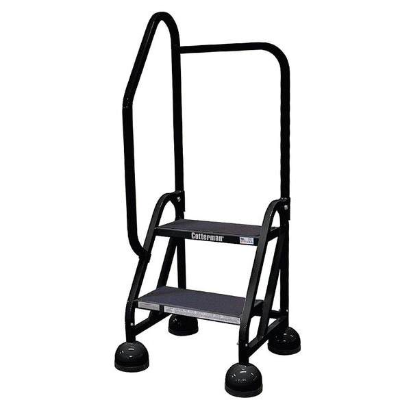 Rolling Ladder, Material Steel, Platform Height 1.5 ft, Handrails Included Yes, Handrail Height 2.5 ft, Overall Height 4 ft, Number of Steps 2, Unassembled, Load Capacity 450 lb, Step Tread Antislip Vinyl, Platform Depth 8 in, Platform Width 16 in, Bottom Width 22 in, Base Depth 20 in, Overall Width 22 in, Climbing Angle 56 Degrees , Step Depth 8 in, Step Width 16 in, Ladder Actuation Weight Activated Step Lock, Finish Powder Coated, Color Black