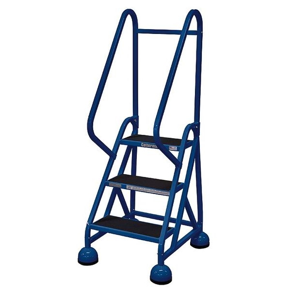 Rolling Ladder, Material Steel, Platform Height 2.3 ft, Handrails Included Yes, Handrail Height 2.5 ft, Overall Height 4.8 ft, Number of Steps 3, Unassembled, Load Capacity 450 lb, Step Tread Antislip Vinyl, Platform Depth 14 in, Platform Width 16 in, Bottom Width 24 in, Base Depth 32 in, Overall Width 24 in, Climbing Angle 56 Degrees , Step Depth 8 in, Step Width 16 in, Ladder Actuation Weight Activated Step Lock, Finish Powder Coated, Color Blue