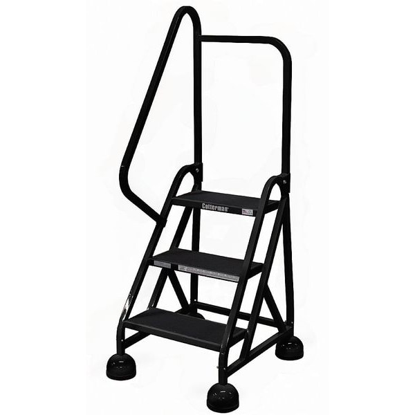 57 in H Steel Rolling Ladder, 3 Steps, 450 lb Load Capacity