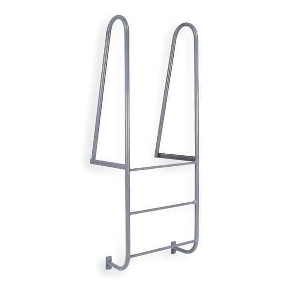 Fixed Ladder, Walk-Thru Included Yes, Exit Forward, Overall Height 6 ft, Overall Width 27.5 in, Material Steel, Load Capacity 300 lb, Number of Steps 3, Top Step Height 2 ft, Rung Dia. 1 1/4 in, Rung/Step Spacing 12 in, Step Width 24 in, Finish Powder Coated, Standards CAl/OSHA Compliant, Handrail Height 3.5 ft