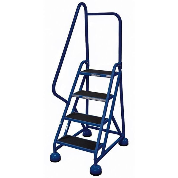 Rolling Ladder, Material Steel, Platform Height 3 ft, Handrails Included Yes, Handrail Height 2.5 ft, Overall Height 5.5 ft, Number of Steps 4, Unassembled, Load Capacity 450 lb, Step Tread Antislip Vinyl, Platform Depth 14 in, Platform Width 16 in, Bottom Width 25 in, Base Depth 39 in, Overall Width 25 in, Climbing Angle 56 Degrees , Step Depth 8 in, Step Width 16 in, Ladder Actuation Weight Activated Step Lock, Finish Powder Coated, Color Blue