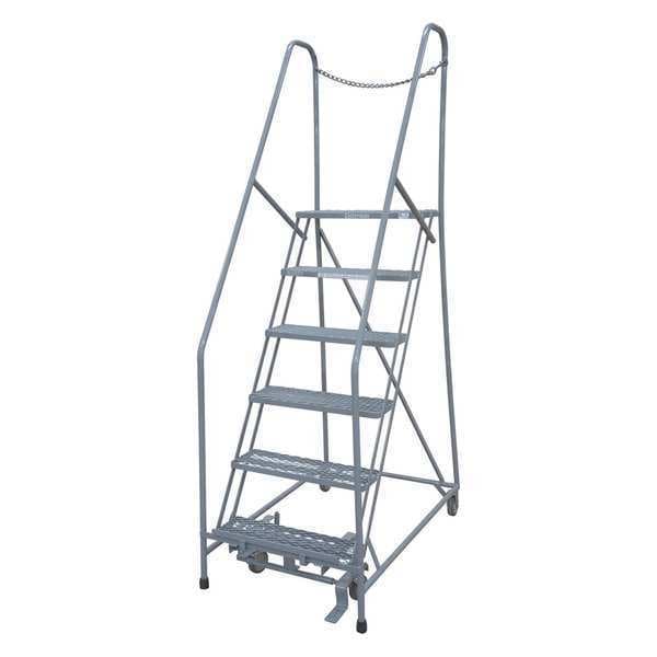 90 in H Steel Rolling Ladder, 6 Steps, 450 lb Load Capacity