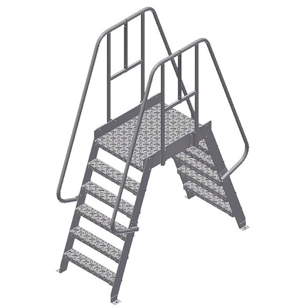 Crossover Bridge, 48 in Platform Ht, Aluminum, 500 lb Load Capacity, 6 Steps