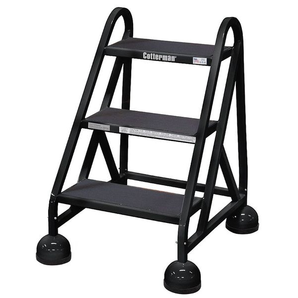 Rolling Step, 3 Steps, 31 in Overall Height, Steel, Black