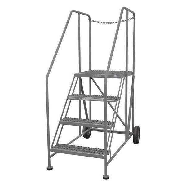 Single Access Rolling Platform, Material Steel, Platform Style Single Access, Platform Height 40 in, Load Capacity 800 lb, Base Depth 54 in, Bottom Width 32 in, Platform Depth 24 in, Platform Width 24 in, Overall Height 5 ft 10 in, Handrail Height Not Applicable, Number of Guard Rails 3, Number of Legs 2, Number of Steps 4, Step Width 24 in, Step Depth 7 in, Climbing Angle 50 Degrees , Step Tread Serrated, Color Gray, Finish Powder Coated, Standards ANSI, OSHA Compliant