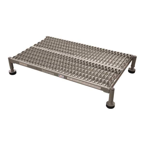 Single Step Platform, Material Steel, Platform Style Single Access, Platform Height 6 in, Load Capacity 800 lb, Number of Modular Decks 0, Base Depth 41 in, Bottom Width 22 in, Platform Depth 19 in, Platform Width 36 in, Overall Height 6 in, Handrail Height Not Applicable, Number of Guard Rails 0, Number of Legs 4, Number of Steps 1, Step Width 36 in, Step Depth 19 in, Climbing Angle Not Applicable, Step Tread Serrated, Color Gray, Finish Powder Coated, Standards OSHA Compliant