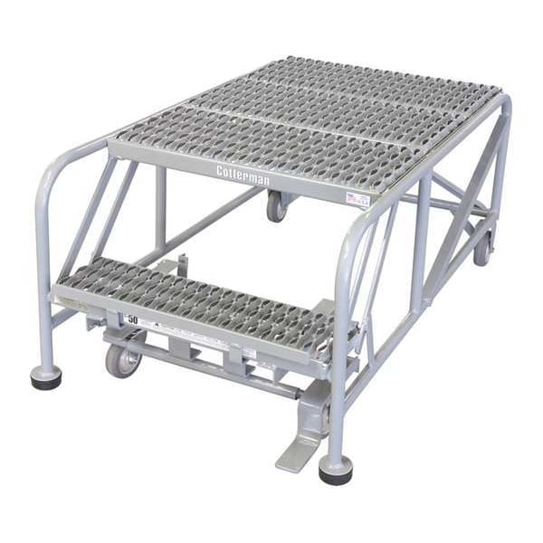 Single Access Rolling Platform, Material Steel, Platform Style Single Access, Platform Height 20 in, Load Capacity 800 lb, Number of Modular Decks 0, Base Depth 46 in, Bottom Width 28 in, Platform Depth 36 in, Platform Width 24 in, Overall Height 1 ft 8 in, Handrail Height Not Applicable, Number of Guard Rails 0, Number of Legs 2, Number of Steps 2, Step Width 24 in, Step Depth 7 in, Climbing Angle 50 Degrees , Step Tread Serrated, Color Yellow, Finish Powder Coated