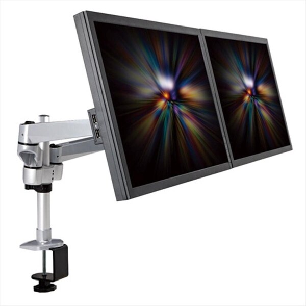 Dual Monitor Desk Mount Spring Arm Quick Connect integrates fashion with function delivering ergonomic performance with style. With weight capacity of 19.8lbs this desk mount features 360 degree monitor rotation 105 degree tilt 360 degree swivel and 10.6 in. vertical distance height adjustments. The desk arm is designed with cable management to provide neat desk space. The monitor mount is ideal for classrooms offices homes public area industrial settings production line and many more. This LCD desktop mount renders maneuverability flexibility and a chic look that is sure to flatter your monitor. The multi monitor mount boasts integrated strength through the latest engineering technology and is tested for durability in our offshore manufacturing plant. The Cotytech monitor arm has been built with the end user in mind and features easy installation while offering intuitive practical & functional design from one of the leading manufacturers of monitor mounts. All our monitor mounts offer five year warranty. Features -Desk-mountable available in clamp base and grommet base. -Clamp table thickness - 0.79 - 5 in.20-127mm -Grommet table thickness - 0.79 - 5 in.20-127mm -Hole Diameter - 0.39-1.97 10-50mm -Pole length - 11.8 300mm -Quick mount & quick release designs at 3 connecting points - stand spring arm and monitor end. -Supports two LCD monitors -Maximum adjustment rendered by tilting swiveling pivoting and dynamic height adjustment. -Swift and easy movements and adjustments. -10.6 in. Height adjustment -Solid Aluminum die-cast construction -Space saving with its compact design -Smooth extension 27.1 in. to achieve ideal viewing angles -Clean look with minimal hardware visible from underside of work surface -Rotation 360° and side-to-side pivot -Neat and efficient cable management -Maximum productivity and supreme ergonomic comfort -Easy installation and dis-installation. Specifications -Dimension - Minimum - 3.39 D x 3.39 W x 11.8 H in. -Dimension - Maximum - 15.75 D x 31.5 W x 22.8 H in. -Item Weight - 15 lbs. -Mounting Pattern- VESA compliant- 75 x 75 and 100 x 100 -Maximum extension- 15.75 in. 400mm