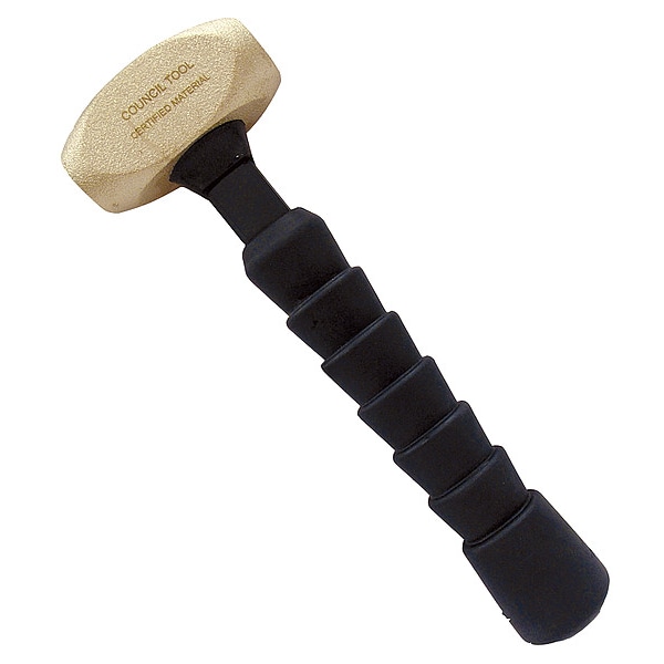 Non-Sparking Engineering Hammer, Hammer Type Non-Sparking Hammer, Non-Sparking Yes, Handle Material Fiberglass, Head Material Bronze, Head Weight 2 1/2 lb, Face Diameter 1 1/2 in, Overall Length 10 in, Handle Length 10 in, Grip Style Ribbed, Face Shape Hexagon, Round, Dead Blow Hammer No, Tether Ready No, Replaceable Handle No, Face Material Manganese Bronze Alloy, Features Non-Magnetic, Non-Marring, Non-Sparking, Grip Material Rubber