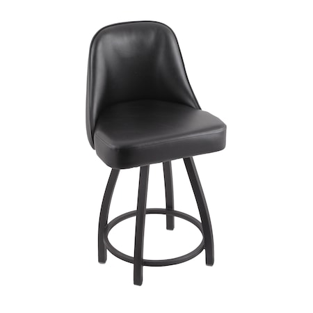 25" Low Back Swivel Counter Stool, Pewter Finish, Black Vinyl Seat