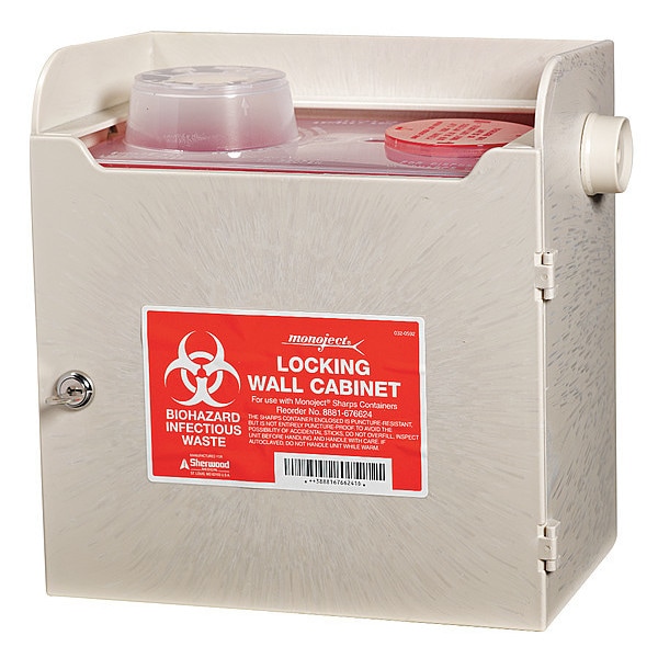 Disposal Container Cabinet, Material Polypropylene, Brown, Height 12 in, Width 11 1/2 in, Length 7 in, For Use With 4 or 8 Qt. Sharps Disposal Containers, Includes Adjustable Shelf, Keyed Alike