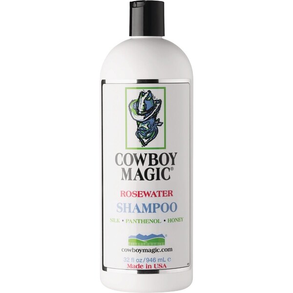 Cowboy Magic Rosewater Shampoo. Silk protein panthenol and honey help restore moisture. Super sudsing action easy to rinse out. Cleans down to the skin. pH balanced formula gently dissolves dirt. Luxurious rosewater fragrance.