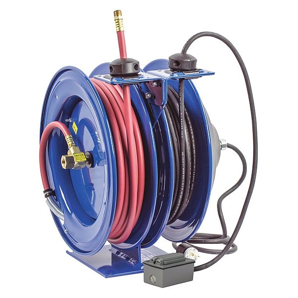 Dual Purpose Spring Driven Hose Reel - Air/Electric Dual Hose Reel - Spring Driven Power Cord & Hose Reel - Spring Driven Reel