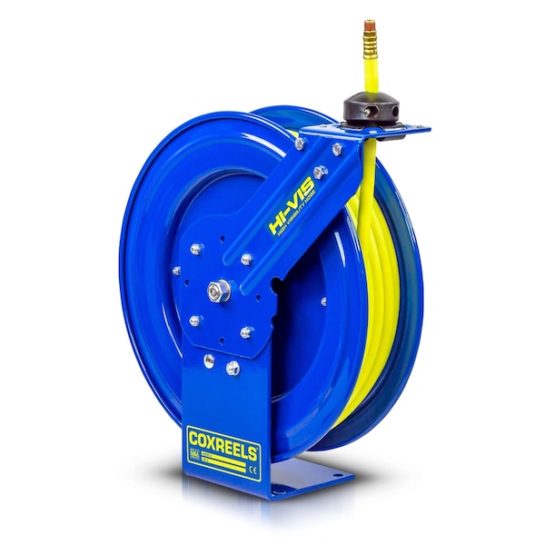 Coxreels P-LP-450-HV Low Pressure Spring Rewind Hose Reel: 1/2" I.D., 50' hose capacity, with high visibility safety hybrid hose, 300 PSI
