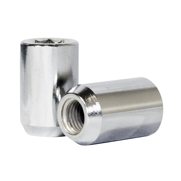 1/2 Inch x 20 Thread Size; 60 Degree Conical; Acorn; Requires 8 Spline Tool See Required Parts; 1.26 Inch Overall Length; Chrome Plated; Silver; Carbon Steel; Box Of 100