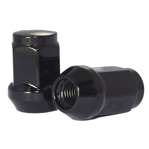 14 mm x 2 Thread Size; 60 Degree Conical Bulge; Acorn; 1.38 Inch Overall Length; 3/4 Inch Lug Nut Hex Size; Black; Steel; Box Of 50