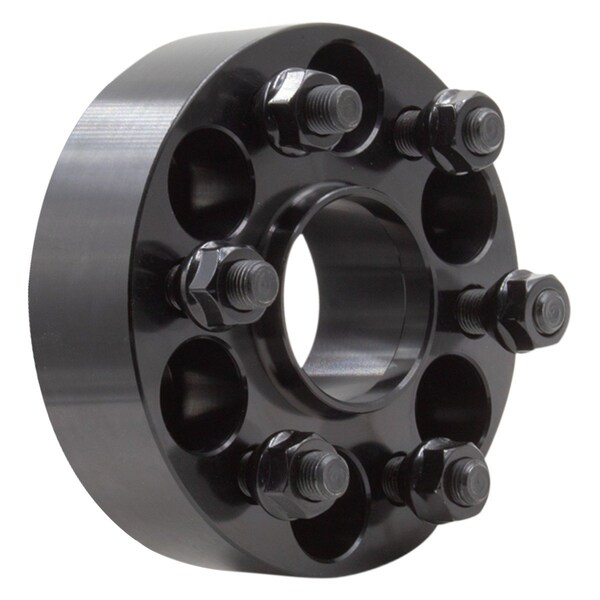 6 x 120-mm/ 6 x 4.72 Inch Axle Bolt Circle; 6 x 120-mm/ 6 x 4.72 Inch Wheel Bolt Circle; Hub Centric; 14 mm x 1.5 Thread Size Studs; 66.90 mm Center Bore; 1-3/4 Inch Thick; Anodized Black; Billet Aluminum; 1-Adapter