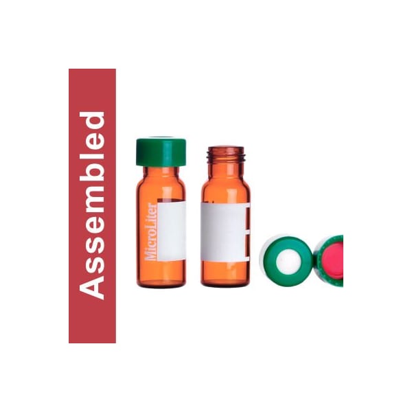 Wheaton microliter assembled kit amber vial with marking patch, green cap and ptfe/silicone septa. Wheaton microliter screw thread autosampler vials come in fully assembled kits that are clean, sealed and ready to use. Assembled kits are shipped with the septa installed inside the cap and the cap screwed onto the vial. Microliter vials are manufactured from type 1 borosilicate glass. Vial 9mm borosilicate glass screw thread autosampler vials, amber with white marking patch screw caps 9mm polypropylene screw caps ptfe / silicone septa: 0.005" red ptfe and 0.035" white silicone, 0.040" total thickness, suitable for gas chromatography cleanroom clean microliter vials are cleaned and assembled in a class 10,000 clean room to eliminate chromatographic errors associated with vials. Critical physical dimensions are fully tested, as well as chemical cleanliness testing, to ensure that trace levels of residues are not present. The result of this process are identical, clean, dependable vials, certified to ensure optimal performance and reproducible results. Class 10,000 clean room packaging eliminates the particulate contamination that can occur during transportation. (note: vials are assembled in a clean room, but the final packaging of the assembled kits is not performed in a clean room.) unsurpassed qualitymicroliter has made the fundamental decision to only offer products that offered proven stable performance and to avoid those products that had a wide range of tolerances which could impede the performance of the autosampler. In addition to meeting the requirements of our customers, microliter has formatted the vials in ways that allowed for the more efficient transfer of samples from the prep lab to the autosampler.warning: this product can expose you to chemicals including tetrafluoroethylene, which are known to the state of california to cause cancer. Prop 65 warning