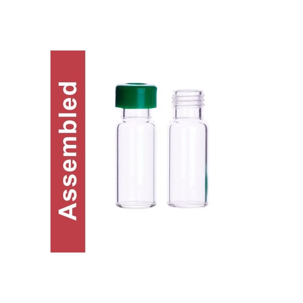 Wheaton microliter assembled kit clear vial, green cap and ptfe septa. Wheaton microliter screw thread autosampler vials come in fully assembled kits that are clean, sealed and ready to use. Assembled kits are shipped with the septa installed inside the cap and the cap screwed onto the vial. Microliter vials are manufactured from type 1 borosilicate glass. Vial 9mm borosilicate glass screw thread autosampler vials, clear screw caps 9mm polypropylene screw caps ptfe disk, 0.010", suitable for liquid chromatography cleanroom clean microliter vials are cleaned and assembled in a class 10,000 clean room to eliminate chromatographic errors associated with vials. Critical physical dimensions are fully tested, as well as chemical cleanliness testing, to ensure that trace levels of residues are not present. The result of this process are identical, clean, dependable vials, certified to ensure optimal performance and reproducible results. Class 10,000 clean room packaging eliminates the particulate contamination that can occur during transportation. (note: vials are assembled in a clean room, but the final packaging of the assembled kits is not performed in a clean room.) unsurpassed qualitymicroliter has made the fundamental decision to only offer products that offered proven stable performance and to avoid those products that had a wide range of tolerances which could impede the performance of the autosampler. In addition to meeting the requirements of our customers, microliter has formatted the vials in ways that allowed for the more efficient transfer of samples from the prep lab to the autosampler.warning: this product can expose you to chemicals including tetrafluoroethylene, which are known to the state of california to cause cancer. Prop 65 warning