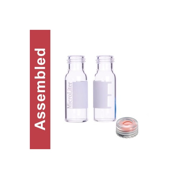 Wheaton microliter assembled kit clear vial with marking patch, natural cap and ptfe septa. Wheaton microliter screw thread autosampler vials come in fully assembled kits that are clean, sealed and ready to use. Assembled kits are shipped with the septa installed inside the cap and the cap screwed onto the vial. Microliter vials are manufactured from type 1 borosilicate glass. Vial 9mm borosilicate glass screw thread autosampler vials with white marking patch, clear screw caps 9mm polypropylene screw caps ptfe disk, 0.010", suitable for liquid chromatography cleanroom clean microliter vials are cleaned and assembled in a class 10,000 clean room to eliminate chromatographic errors associated with vials. Critical physical dimensions are fully tested, as well as chemical cleanliness testing, to ensure that trace levels of residues are not present. The result of this process are identical, clean, dependable vials, certified to ensure optimal performance and reproducible results. Class 10,000 clean room packaging eliminates the particulate contamination that can occur during transportation. (note: vials are assembled in a clean room, but the final packaging of the assembled kits is not performed in a clean room.) unsurpassed qualitymicroliter has made the fundamental decision to only offer products that offered proven stable performance and to avoid those products that had a wide range of tolerances which could impede the performance of the autosampler. In addition to meeting the requirements of our customers, microliter has formatted the vials in ways that allowed for the more efficient transfer of samples from the prep lab to the autosampler.warning: this product can expose you to chemicals including tetrafluoroethylene, which are known to the state of california to cause cancer. Prop 65 warning