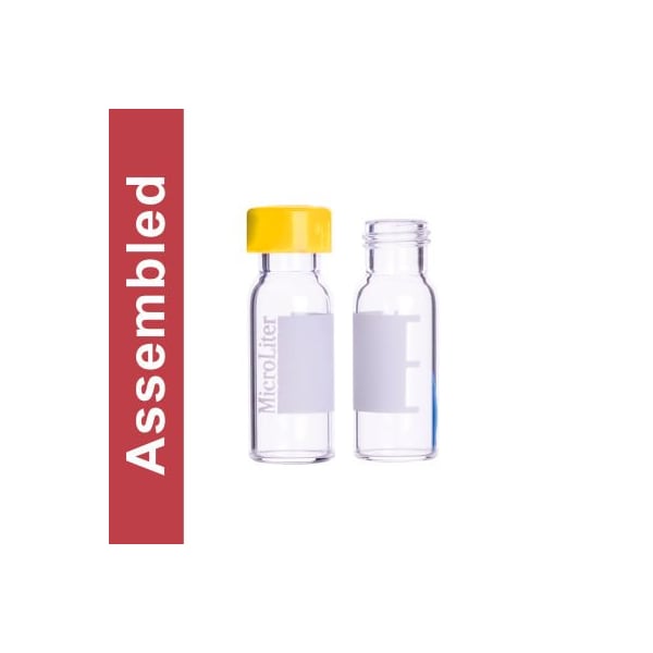 Wheaton microliter assembled kit clear vial with marking patch, yellow cap and ptfe septa. Wheaton microliter screw thread autosampler vials come in fully assembled kits that are clean, sealed and ready to use. Assembled kits are shipped with the septa installed inside the cap and the cap screwed onto the vial. Microliter vials are manufactured from type 1 borosilicate glass. Vial 9mm borosilicate glass screw thread autosampler vials with white marking patch, clear screw caps 9mm polypropylene screw caps ptfe disk, 0.010", suitable for liquid chromatography cleanroom clean microliter vials are cleaned and assembled in a class 10,000 clean room to eliminate chromatographic errors associated with vials. Critical physical dimensions are fully tested, as well as chemical cleanliness testing, to ensure that trace levels of residues are not present. The result of this process are identical, clean, dependable vials, certified to ensure optimal performance and reproducible results. Class 10,000 clean room packaging eliminates the particulate contamination that can occur during transportation. (note: vials are assembled in a clean room, but the final packaging of the assembled kits is not performed in a clean room.) unsurpassed qualitymicroliter has made the fundamental decision to only offer products that offered proven stable performance and to avoid those products that had a wide range of tolerances which could impede the performance of the autosampler. In addition to meeting the requirements of our customers, microliter has formatted the vials in ways that allowed for the more efficient transfer of samples from the prep lab to the autosampler.warning: this product can expose you to chemicals including tetrafluoroethylene, which are known to the state of california to cause cancer. Prop 65 warning